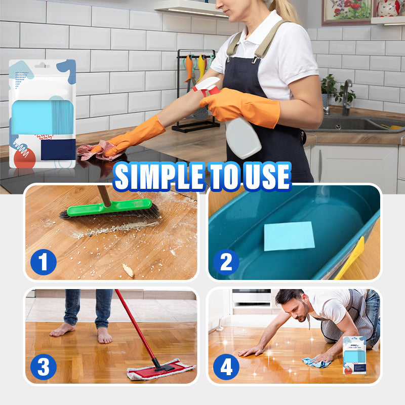 ENKEL ATT ANVĂNDA MED LĂ NGVARIGA RESULTAT  â De multifunktionella rengöringsdukarna för golvrengöring Ă€r otroligt enkla att anvĂ€nda. Lös bara upp ett ark i vatten, blötlĂ€gg mopp i lösningen och moppa sedan golvet. Trots den enkla anvĂ€ndningen Ă€r den flĂ€ckborttagande effekten lĂ„ngvarig. Efter anvĂ€ndning behöver du inte moppa ofta â golvet förblir rent och glansigt under en lĂ€ngre tid.