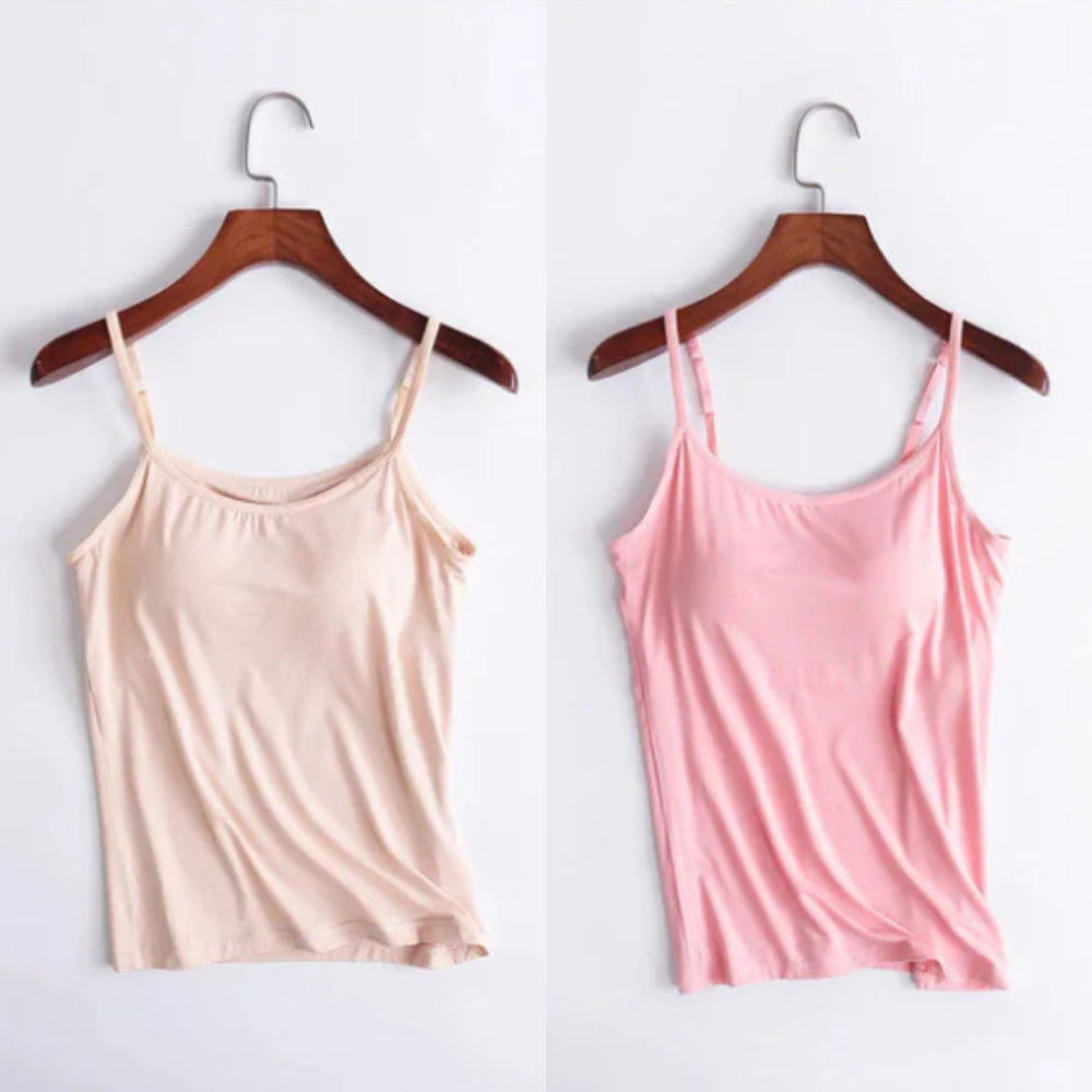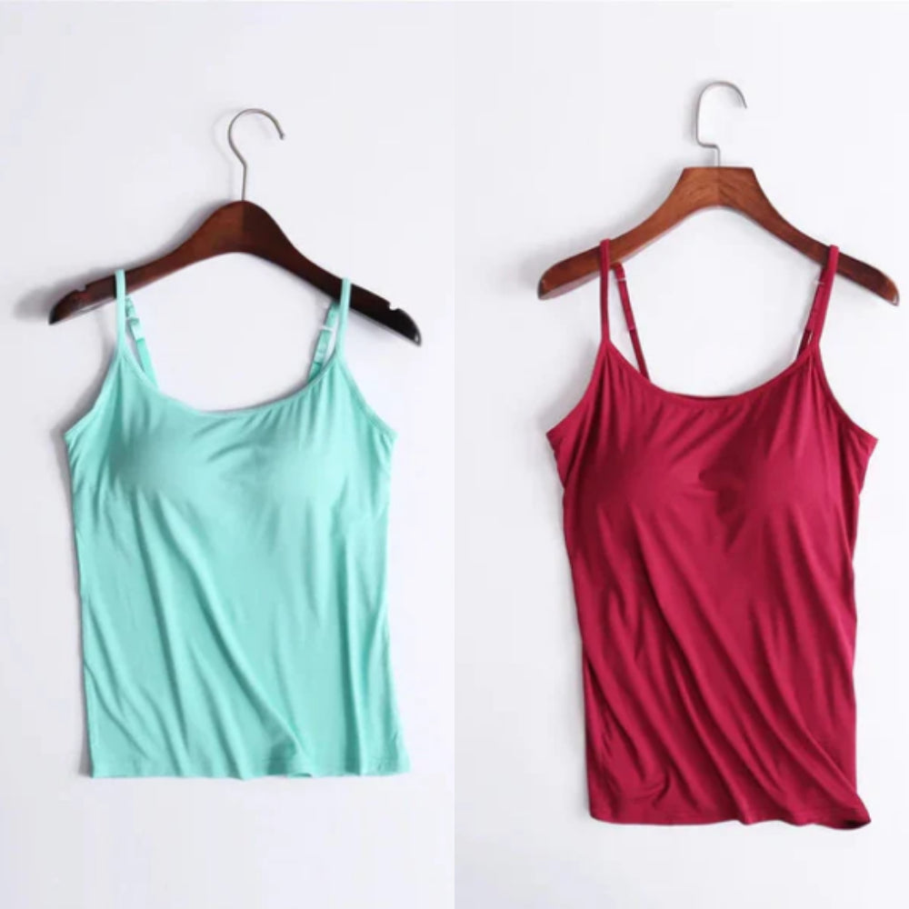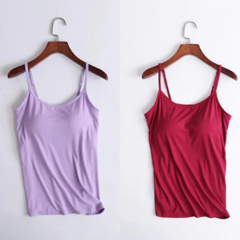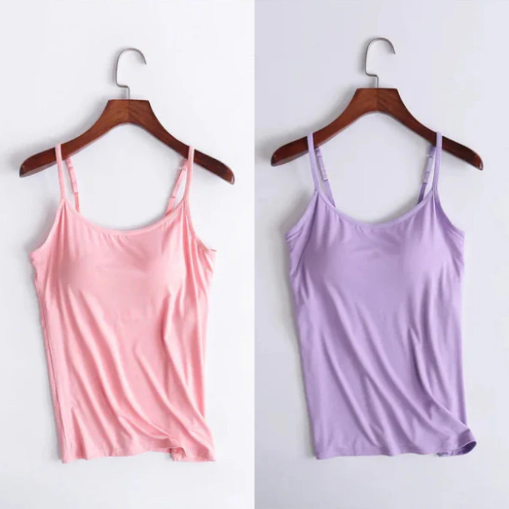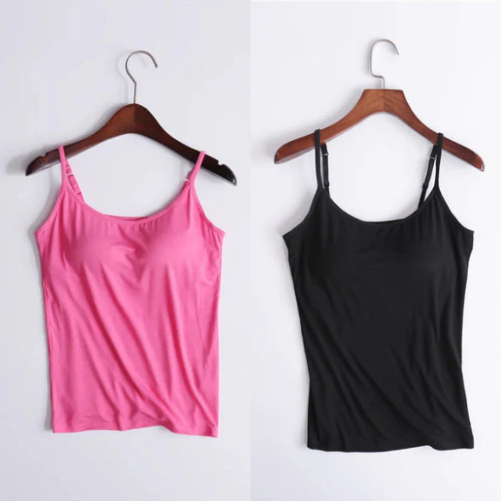 Den klassiska halsringningen med rund hals gör att du kan bära den här camisolen under vad som helst. Det är också ett robust fristående linne med en stödjande inbyggd behå! Det är ett måste för vardagsstilen!