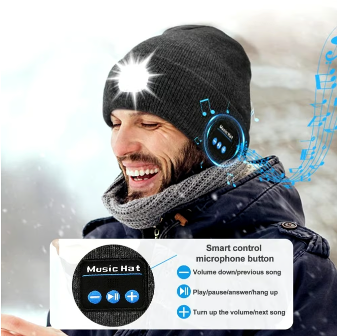 Ge din älskade denna 3 i 1 Bluetooth Hörlursstickad Mössa som ger värme, musik och synlighet för utomhusaktiviteter!