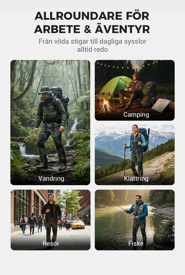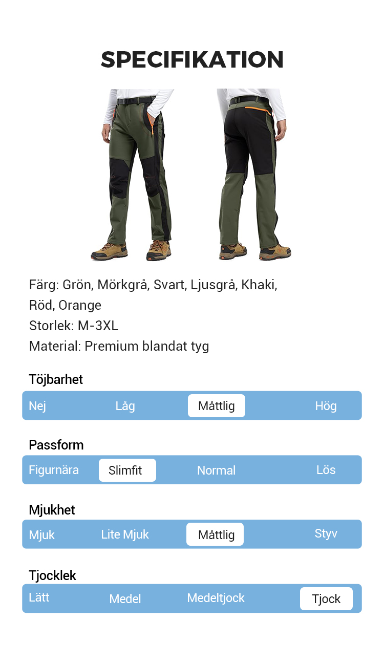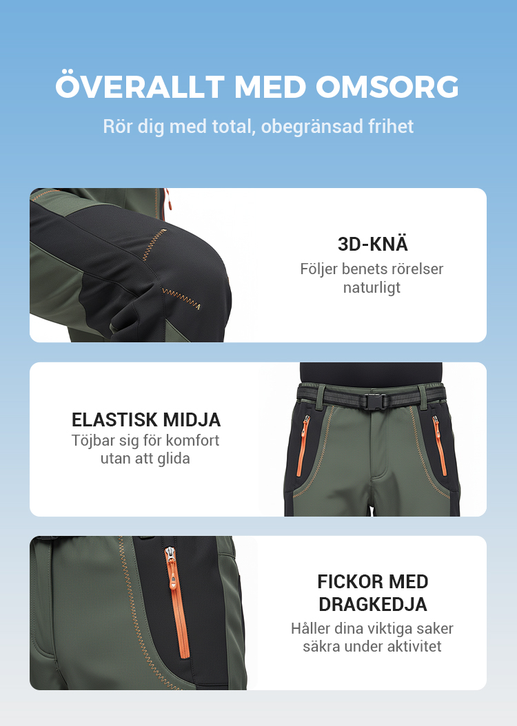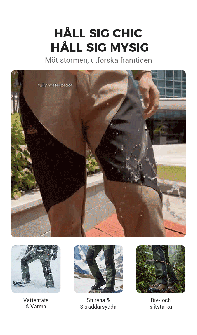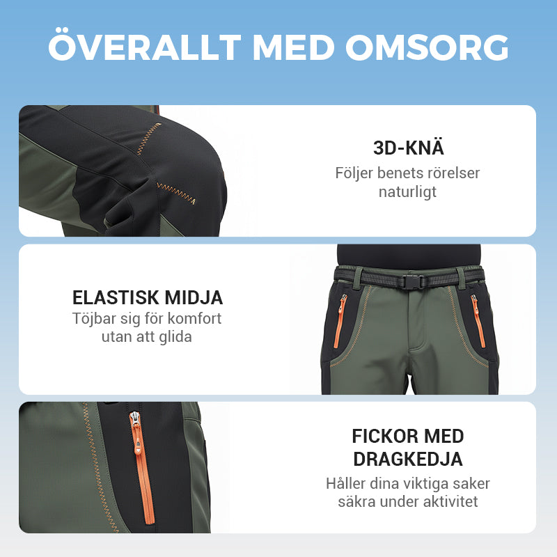 Vindtäta, vattentäta, varma vandringsbyxor med elastisk midja